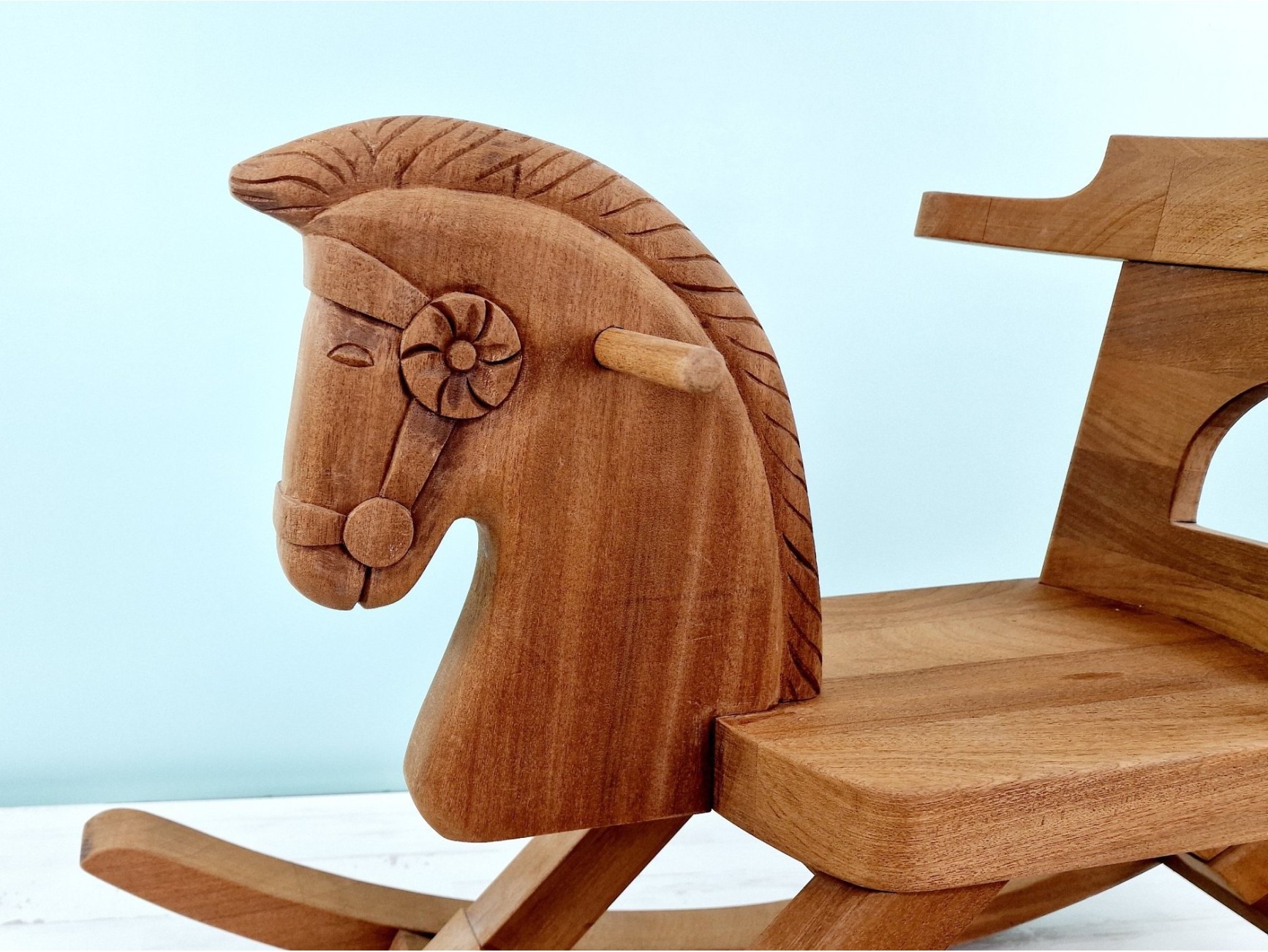 Este encantador Caballito balancín de madera de nogal macizo tallado a mano, está diseñado para convertirse en el juguete favorito de los más pequeños de la casa. Fabricado artesanalmente con materiales de alta calidad, combina la resistencia y durabilidad de la madera maciza con un diseño atemporal y elegante.