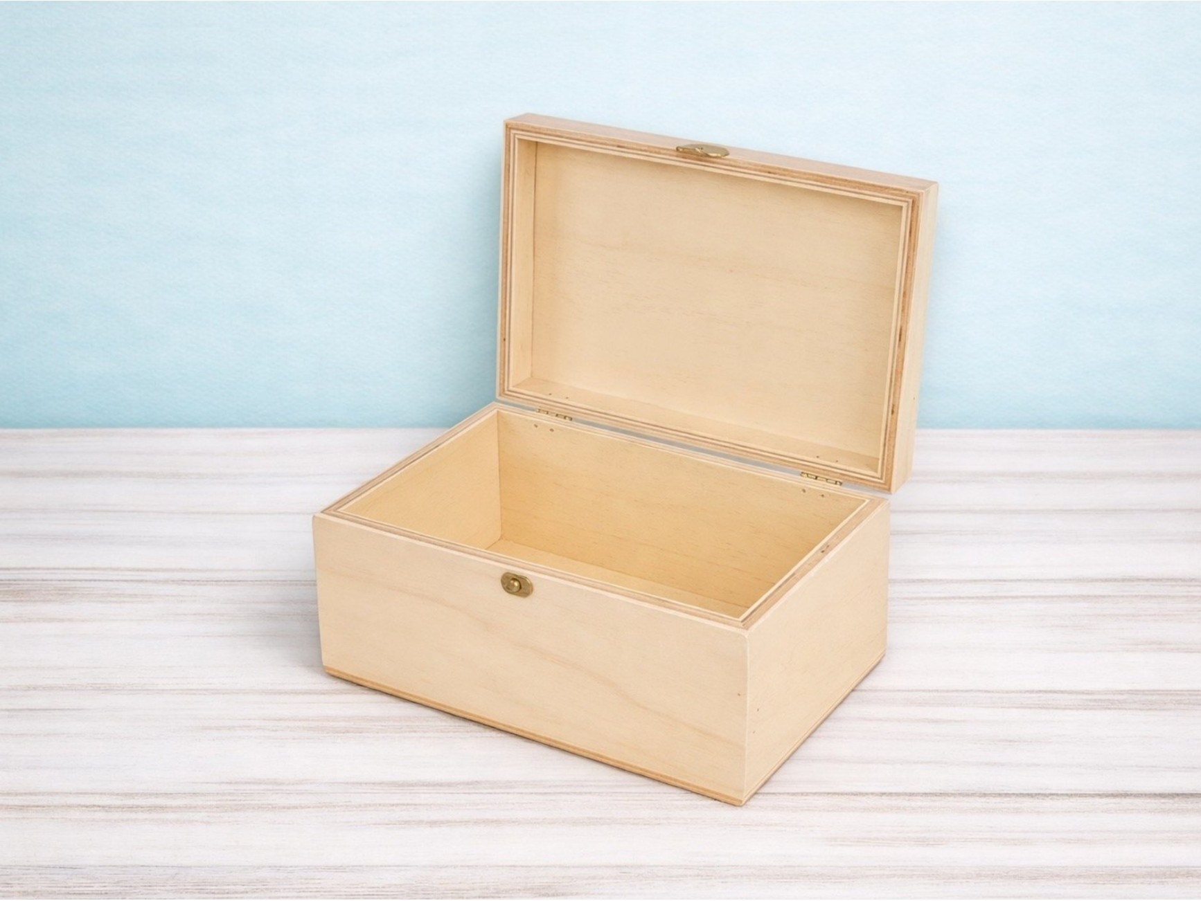Caja fabricada en madera natural sin tratar, ideal para guardar objetos especiales, regalos personalizados o proyectos de manualidades. Su diseño sencillo y elegante la convierte en una opción perfecta para personalizar mediante grabado, pintura, decoupage o cualquier técnica creativa.