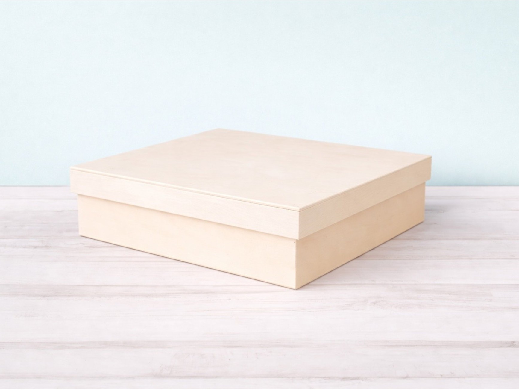 Caja fabricada en chopo con tapa. Ideal para regalos, la puedes pintar o decorar como más te guste..Medida - Interior: 18,5x18,5x9 cm.
