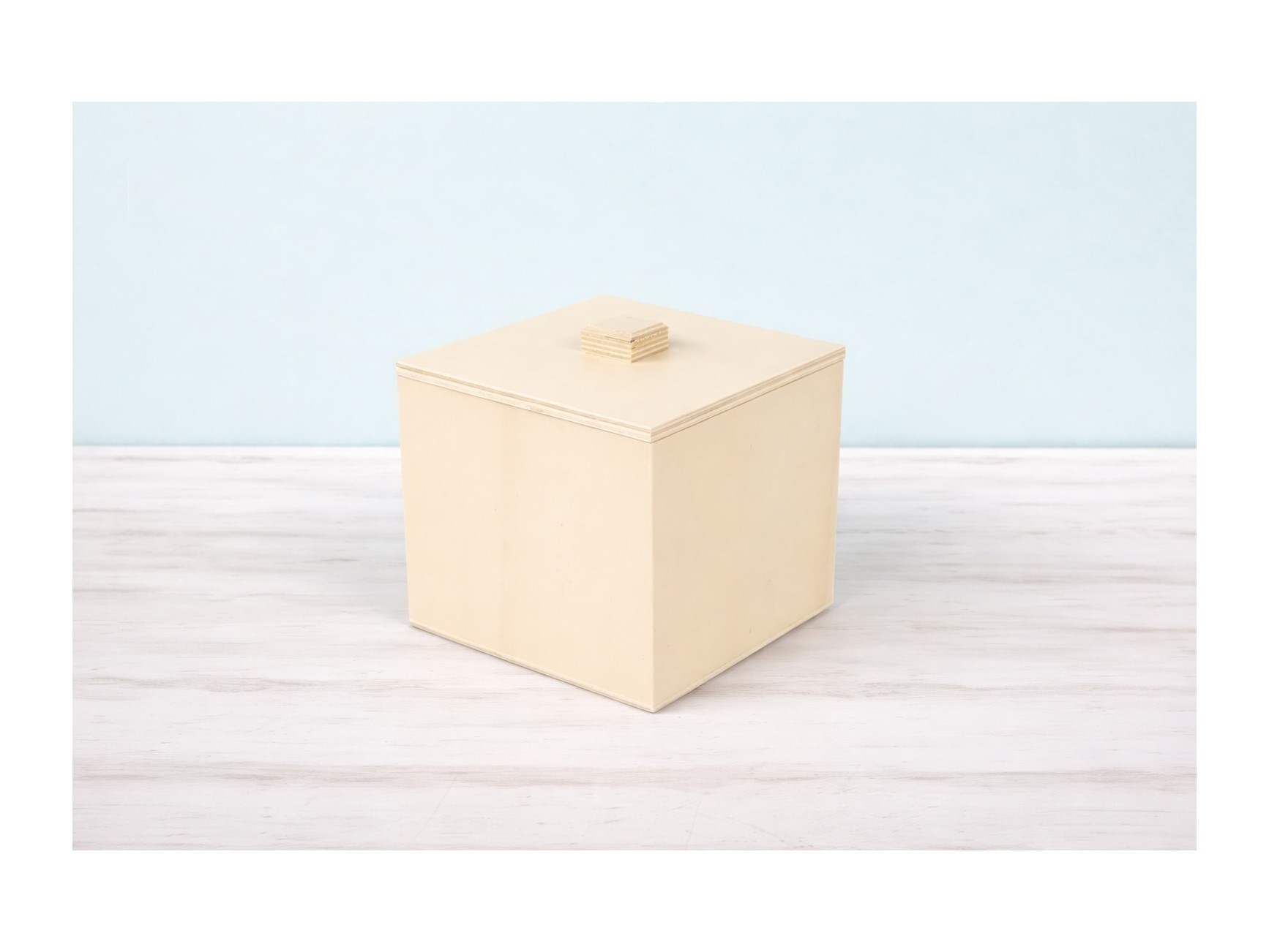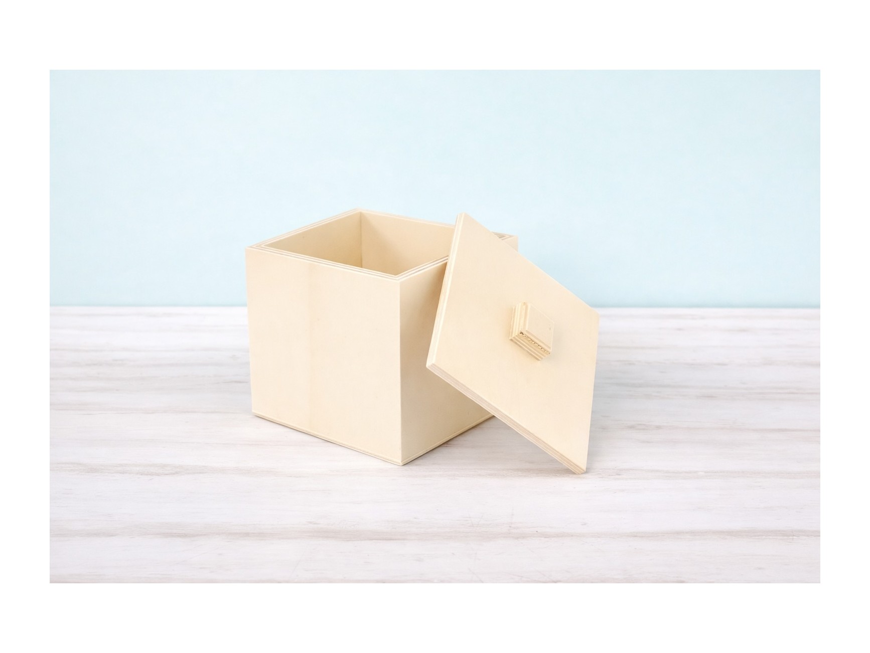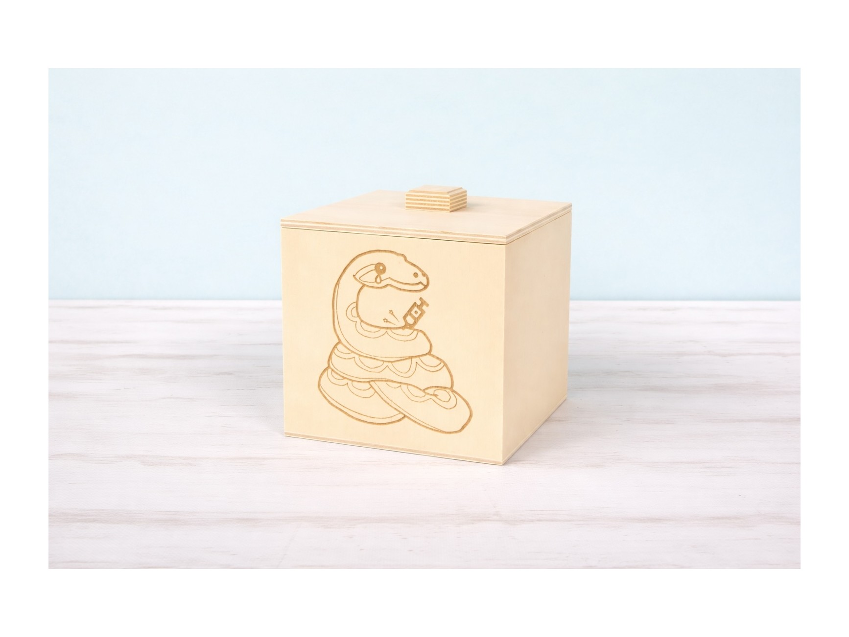 Caja de madera con bisagras y tapa recortada con forma ondulada. Sus 4 divisiones interiores son extraibles.