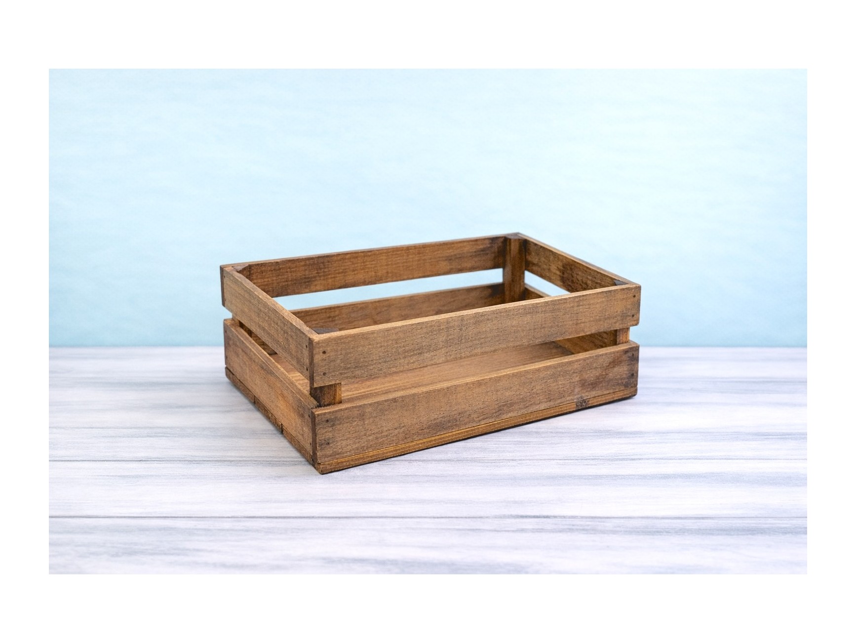Caja cesta fabricada en madera natural de pino envejecida con 2 lamas, ideal para decoración de comercios, bodegas, restaurantes, oficinas, escaparates, eventos y cestas de regalo. Su estética rústica y cálida aporta un toque decorativo muy especial, convirtiéndola en un complemento perfecto tanto para uso comercial como para ambientaciones en interior.