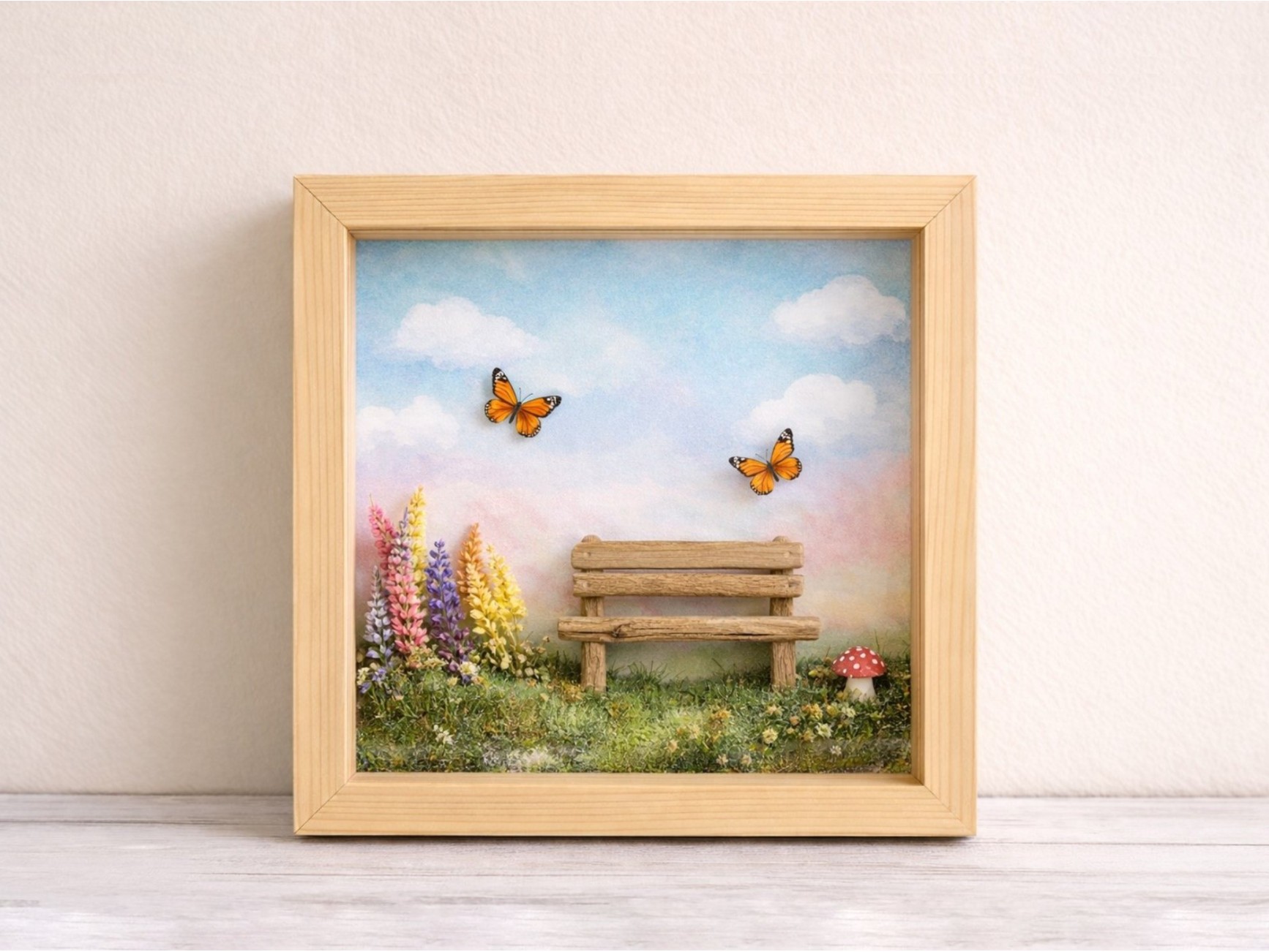 Marco decorativo de madera natural con efecto 3D, ideal para manualidades, recuerdos personalizados y proyectos creativos. Su diseño con fondo profundo permite colocar elementos en relieve, como figuras, piedras, flores secas, recuerdos de viajes o escenas decorativas.