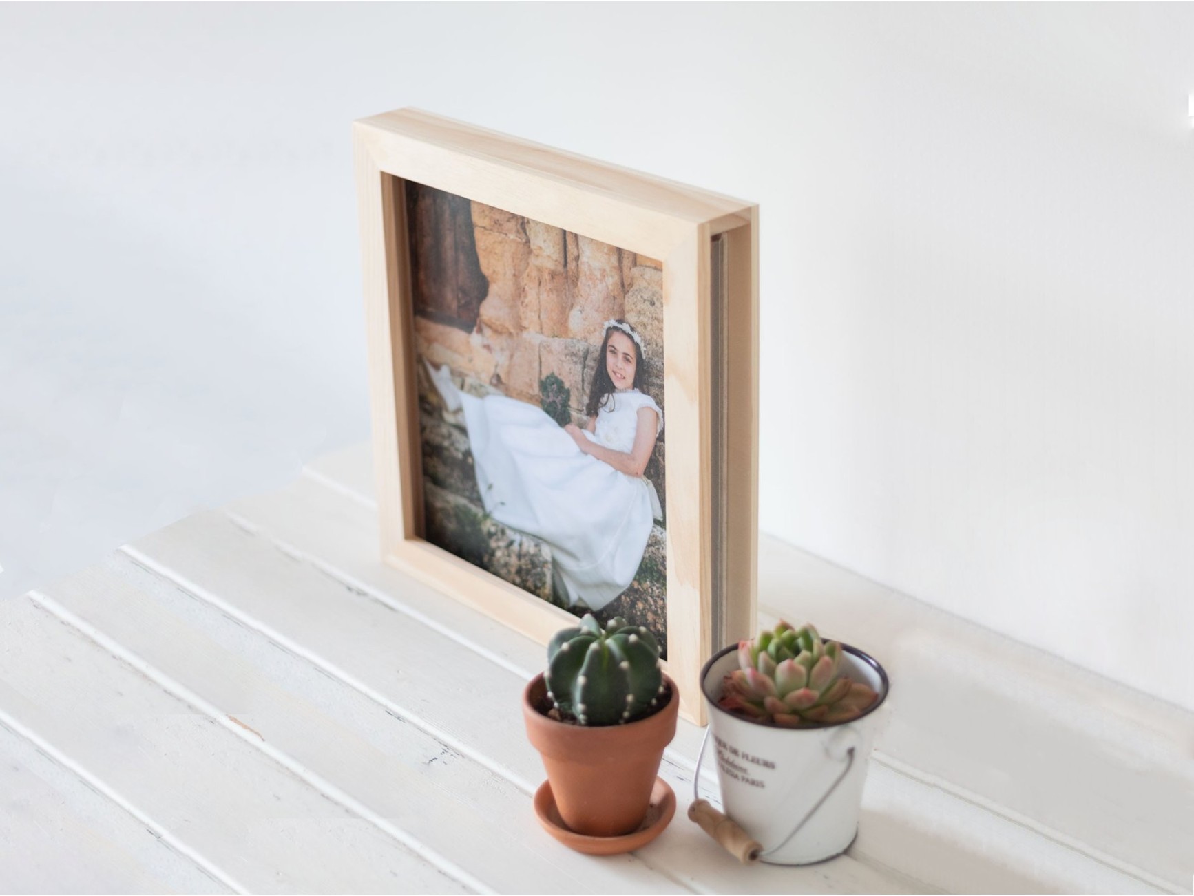 Caja de madera de pino con tapa corredera de Metacrilato para fotos de 15x20. Estas cajas son ideales para la entrega de los trabajos fotográficos. .Medidas - Interior: 22x17x5,5 cm.