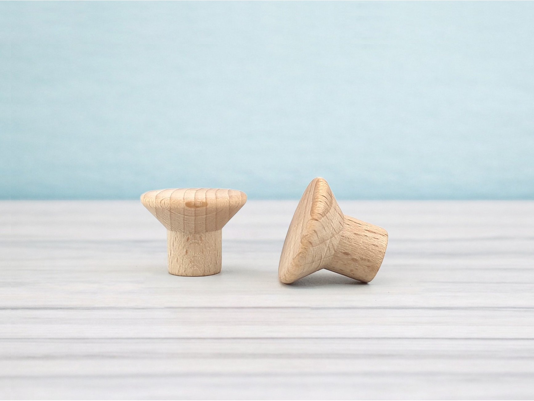 Tapered leg made of natural beech wood, length 73 cm. with metal pin..Measure - Length 73 cm. Ø5 cm. - Metric metal spike M8