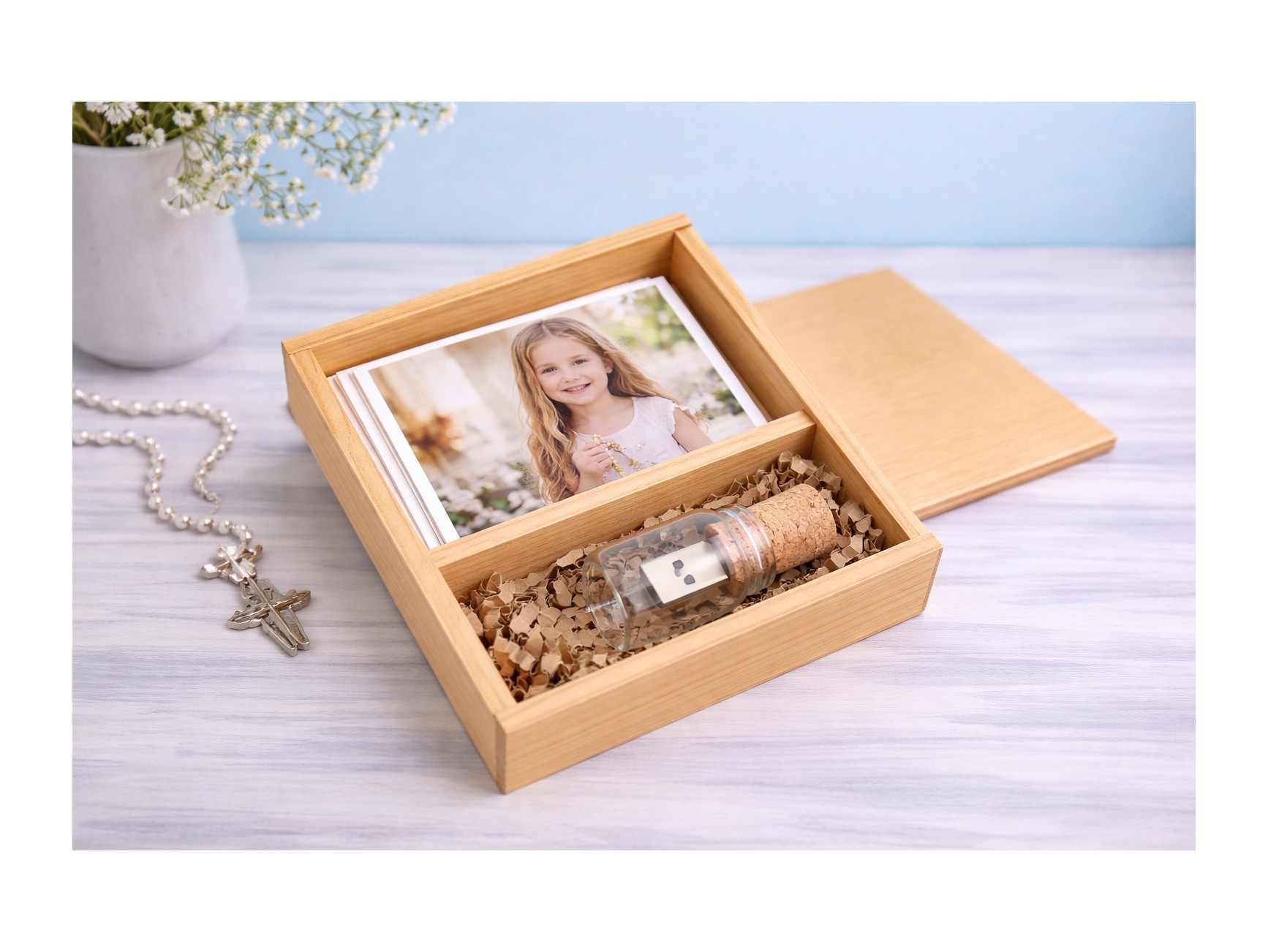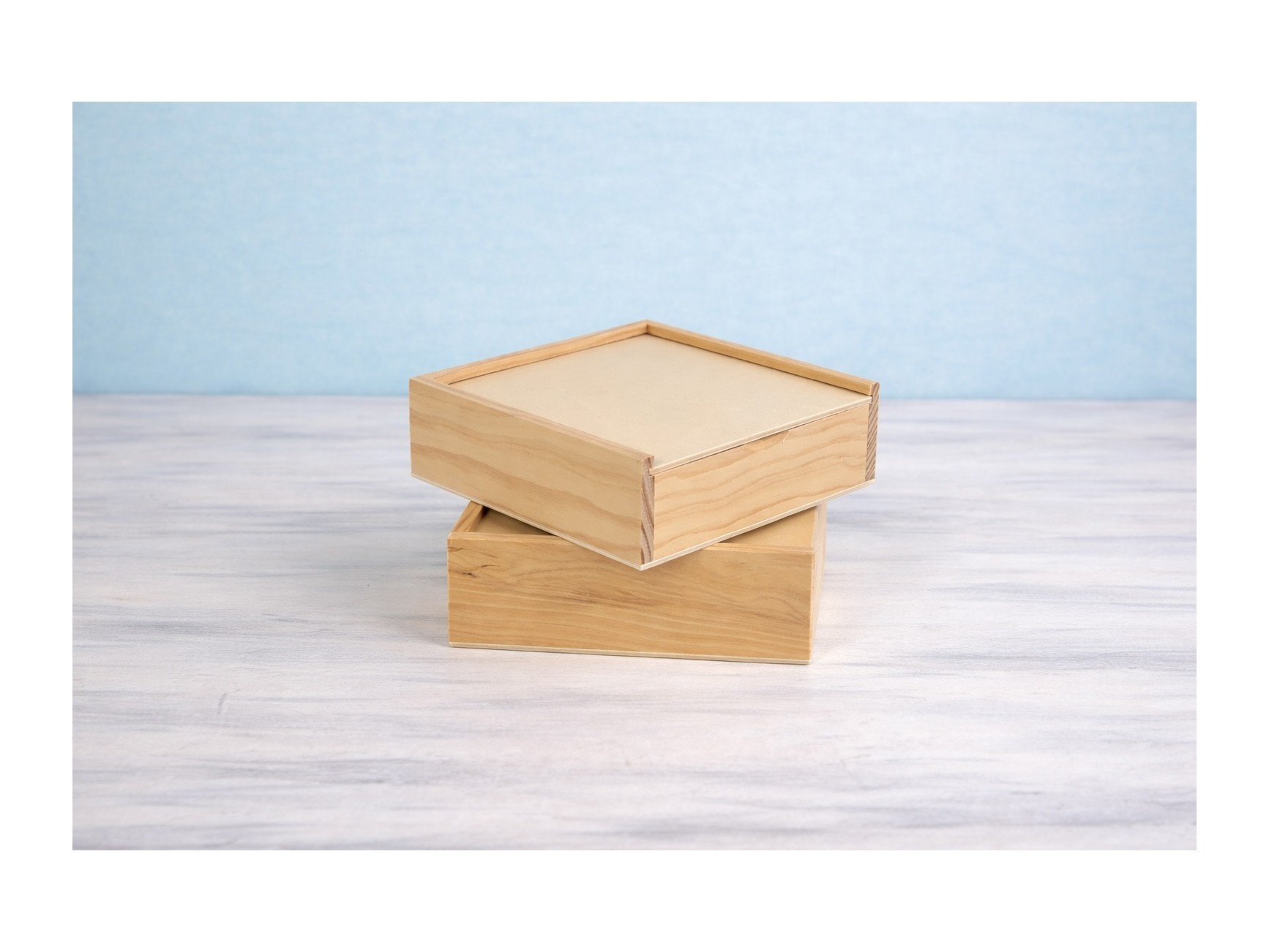 Natural pine wood box with flush sliding lid. Ideal for the wooden pendrive USBCH2.Measurements - Inside: 6.5x4.5x1.5 cm. - Useful part of the cover for engraving 6x4 cm..