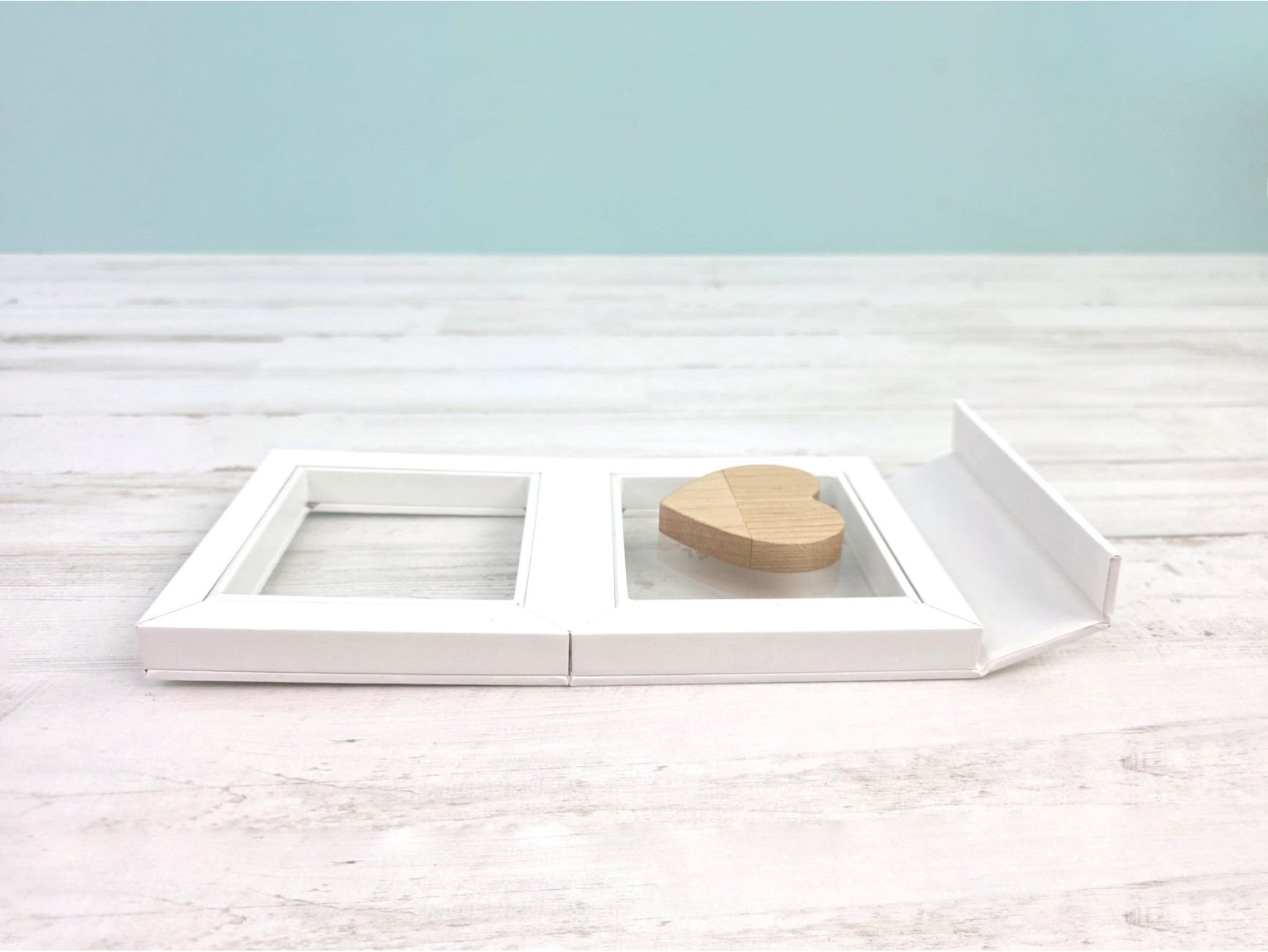 This original and elegant Marco box is the perfect way to present your USB drive in a unique way. It consists of two transparent and flexible membranes that hold the USB drive suspended in its position, creating a spectacular "floating" effect within the frame, visible from both sides.