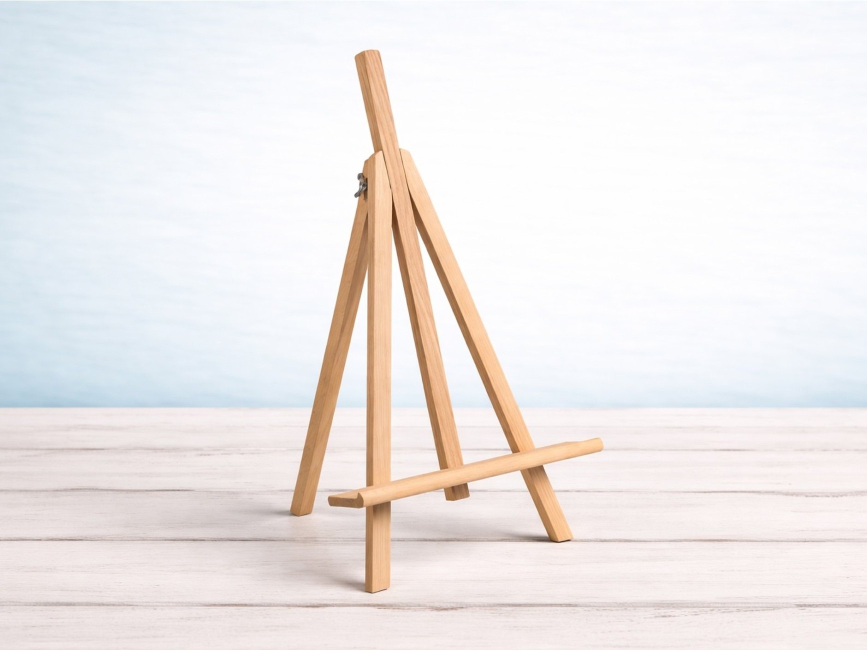 Natural wood tabletop easel, ideal for painting, displaying artwork, photographs, or posters. Its compact and functional design makes it perfect for paintings, presentations, signage at weddings or events, table decorations, and product displays in stores.