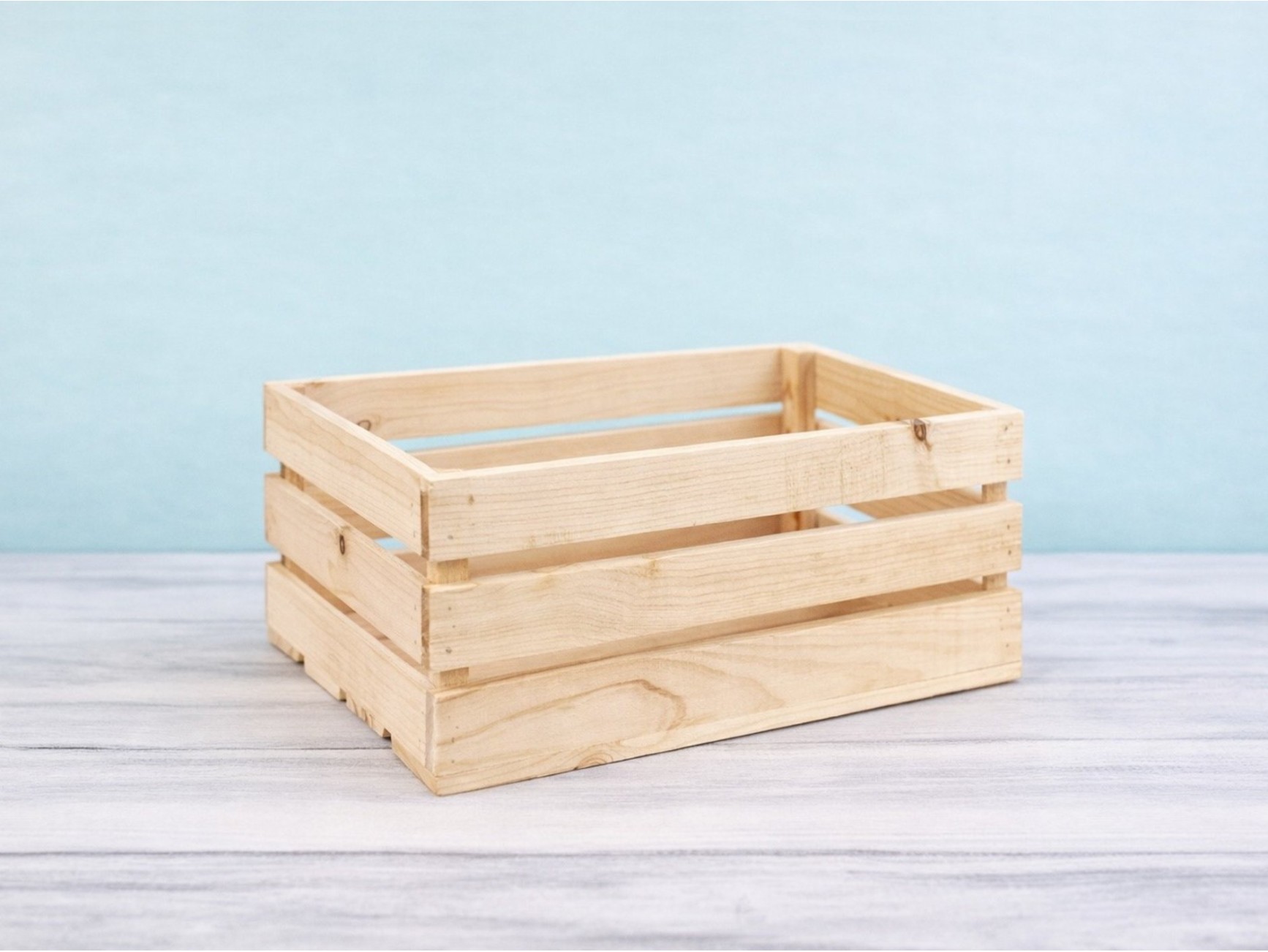 Fruit box made of natural pine wood. Its versatile design makes it a perfect choice for both commercial use and interior decoration, events, or product presentations.
