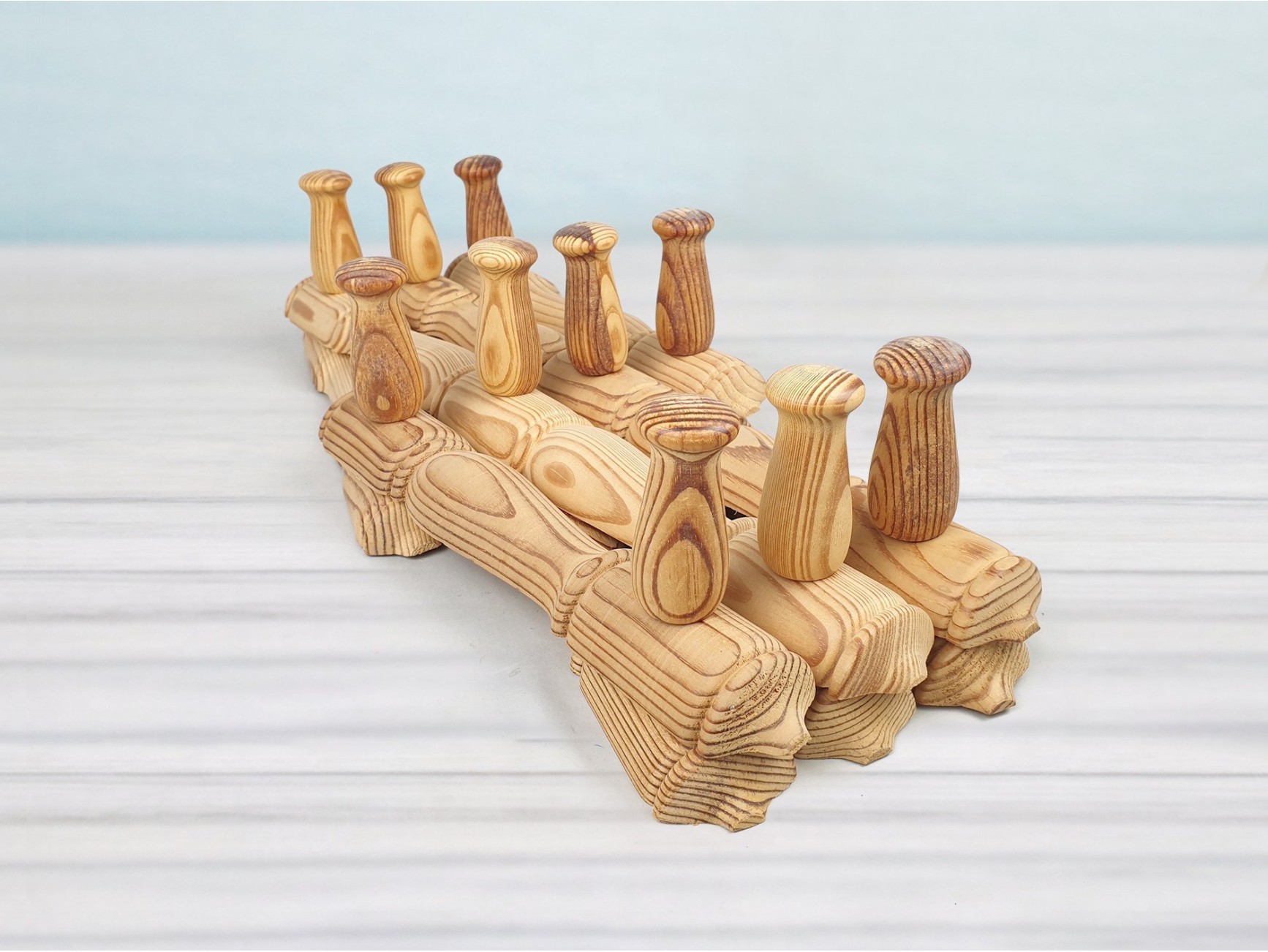 Kit of 5 wooden boxes that can be placed one inside the other, imitating the famous Russian Matryoshka dolls. The boxes are made of 8 mm poplar. thick and all have a lid.