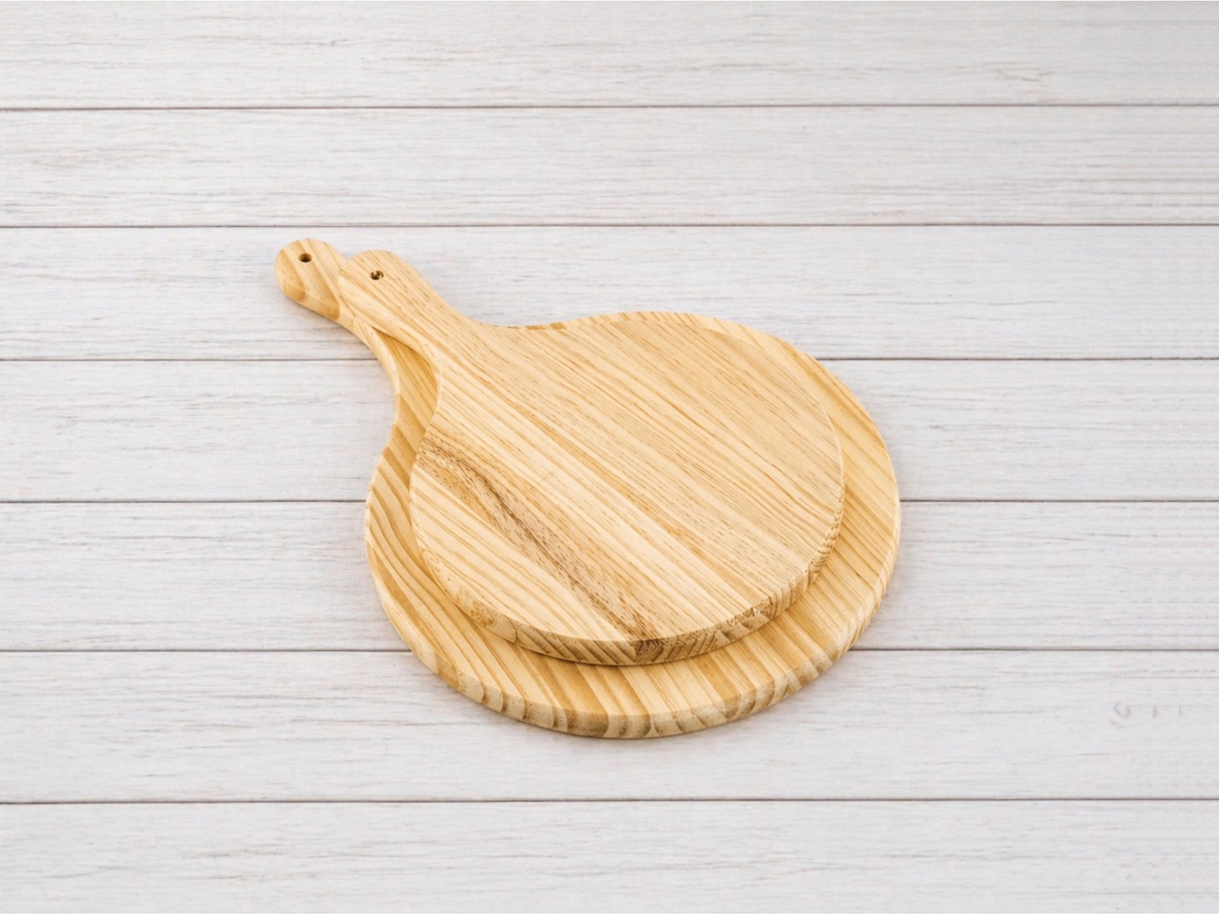Add a warm and elegant touch to your kitchen with this round, natural wood board with a handle, perfect for both chopping and serving. Its timeless design and smooth finish make it an essential for everyday use or for stylishly presenting food.