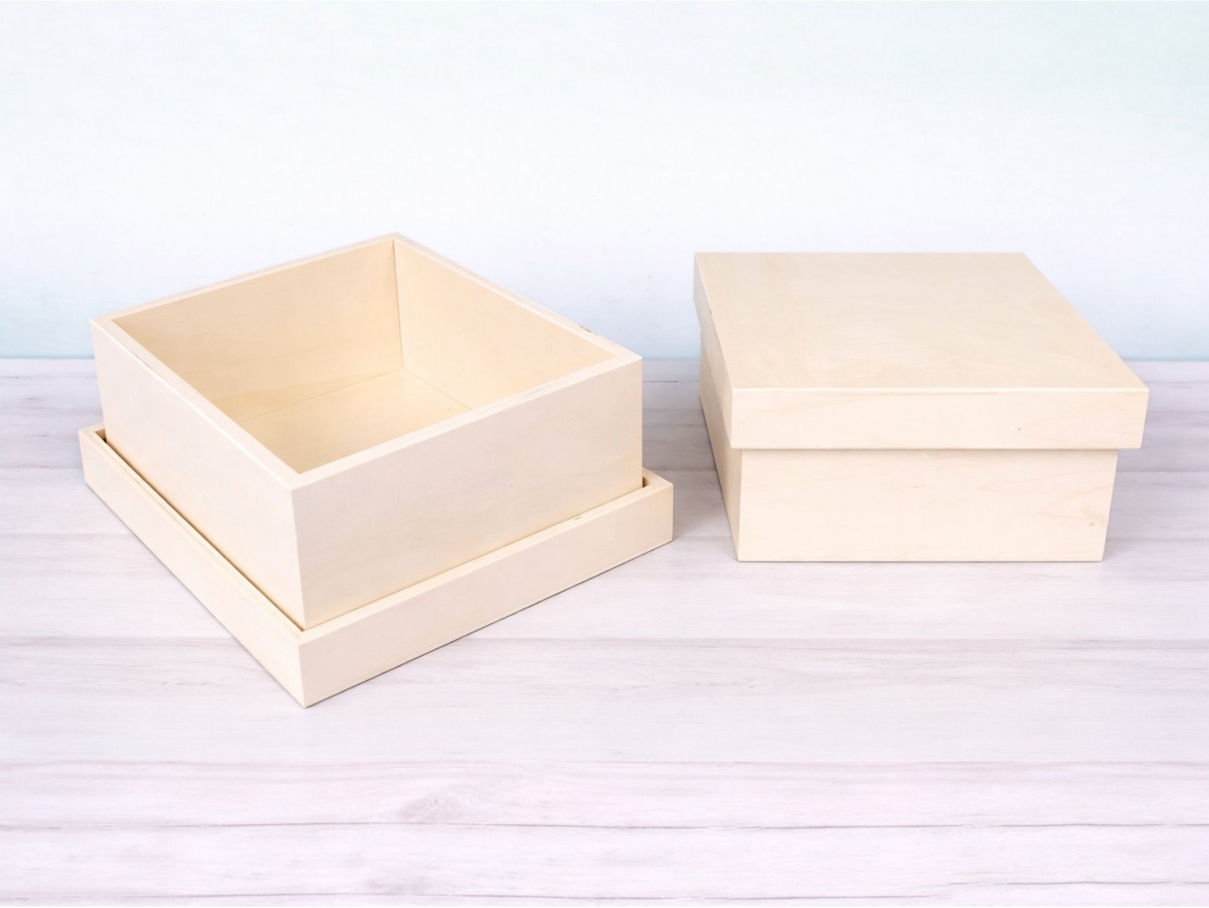 Box made of natural poplar wood, including a lid. Perfect for presenting special gifts such as mugs, handcrafted items, or personalized products.