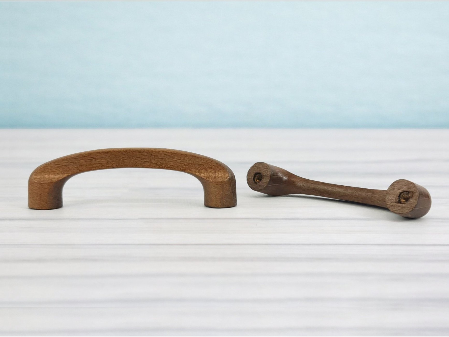 Round handle handle in natural oak wood.