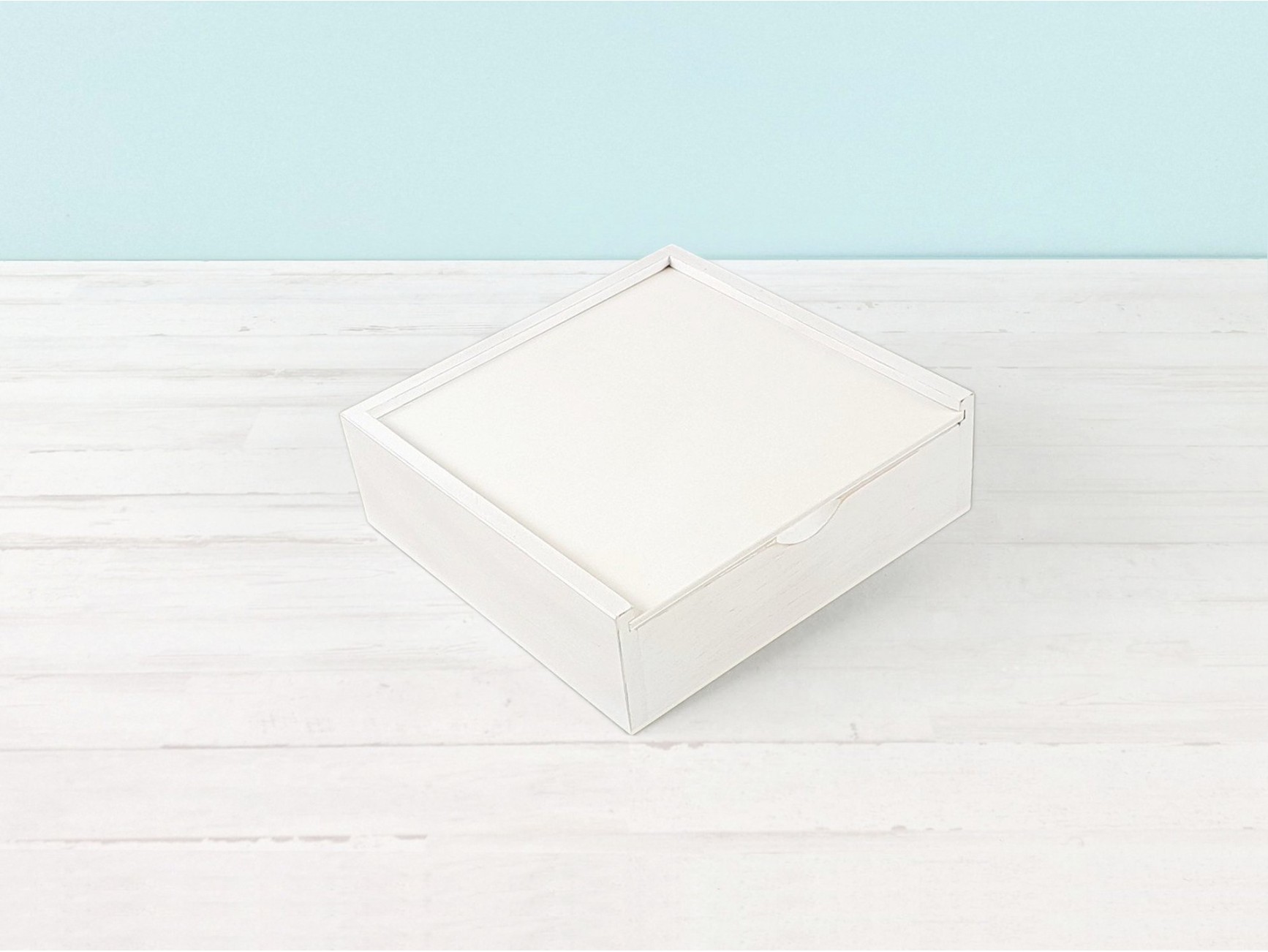 Aged wooden box with sliding lid and internal division of 4 cm for the PenDrive.