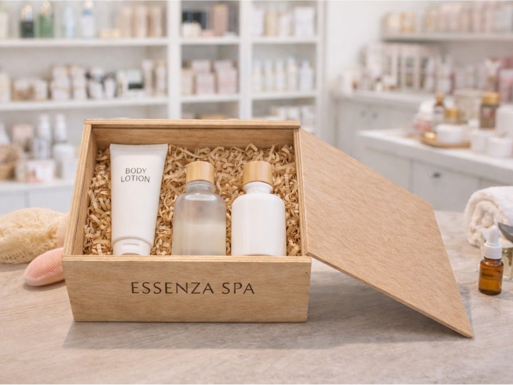 Natural wood box with sliding lid made of wood or methacrylate, ideal for presenting gourmet products, small bottles of oil, spirits, handmade cosmetics or personalised corporate gifts. Its elegant and sturdy design makes it a perfect choice for delicatessens, special events and premium packaging.