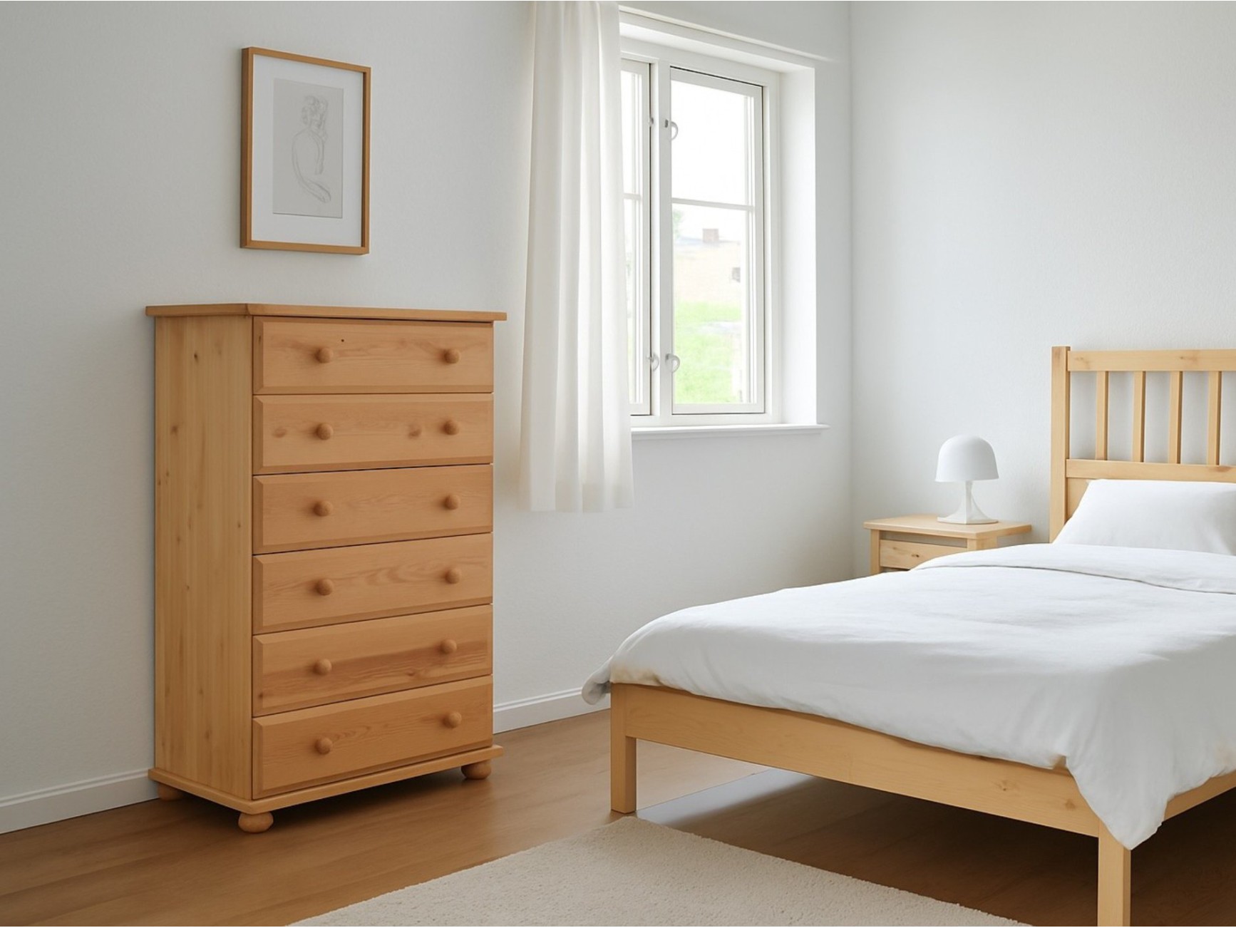 Solid pine wood dresser with 6 drawers. They have some spots and knots. They are perfect for painting or staining.