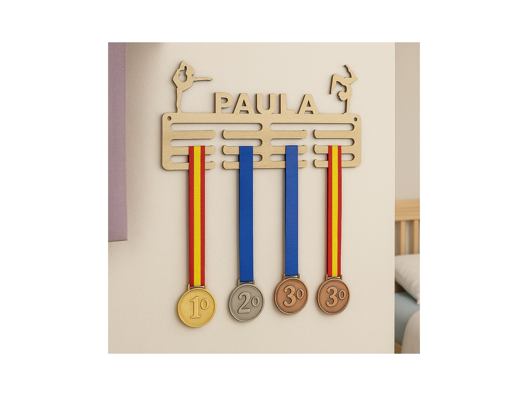 Wooden medal rack personalized with your sport so that the medals are no longer stored in the drawer. It is the perfect gift for sports lovers. We can create all types of designs and silhouettes adapted to any sport. Write us an email and tell us your idea.