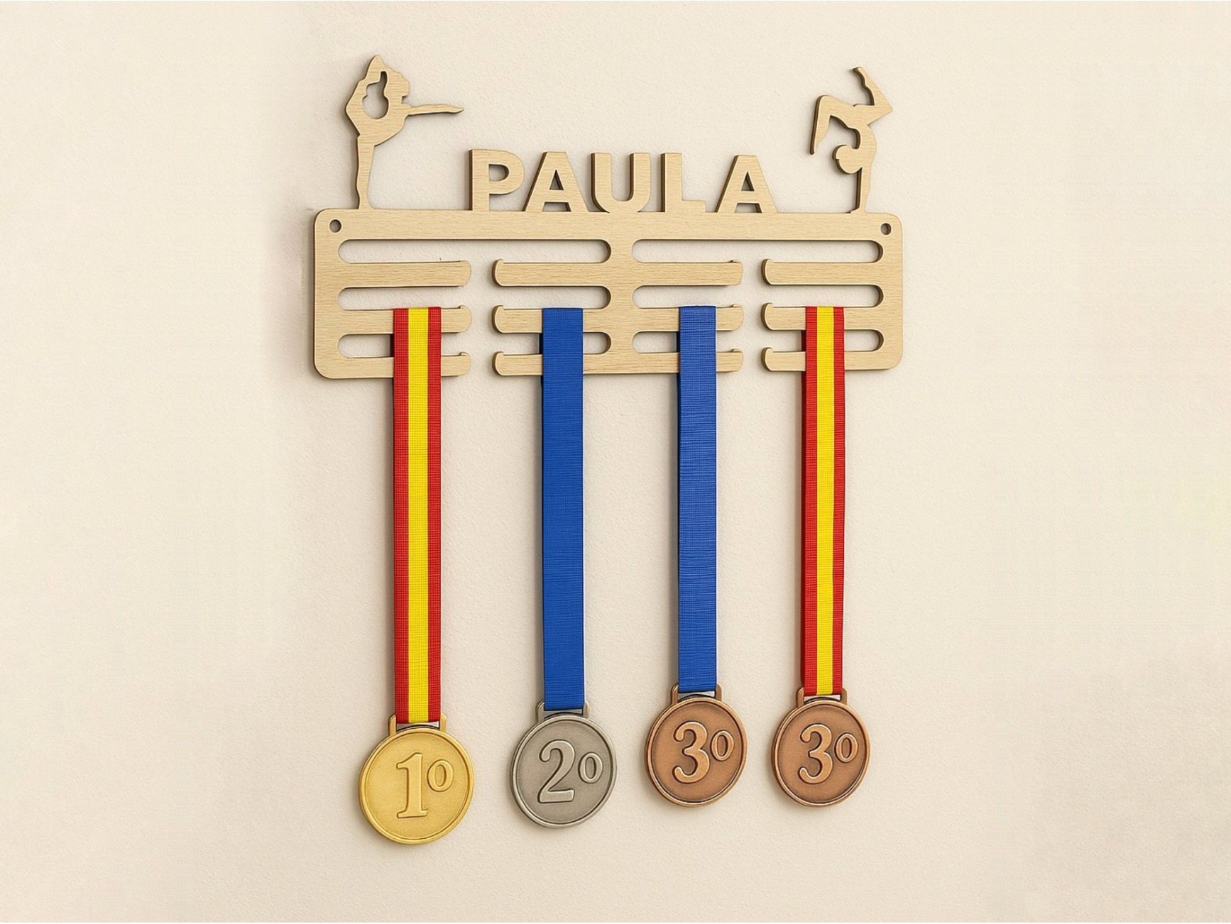 Wooden medal rack personalized with your sport so that the medals are no longer stored in the drawer. It is the perfect gift for sports lovers. We can create all types of designs and silhouettes adapted to any sport. Write us an email and tell us your idea.