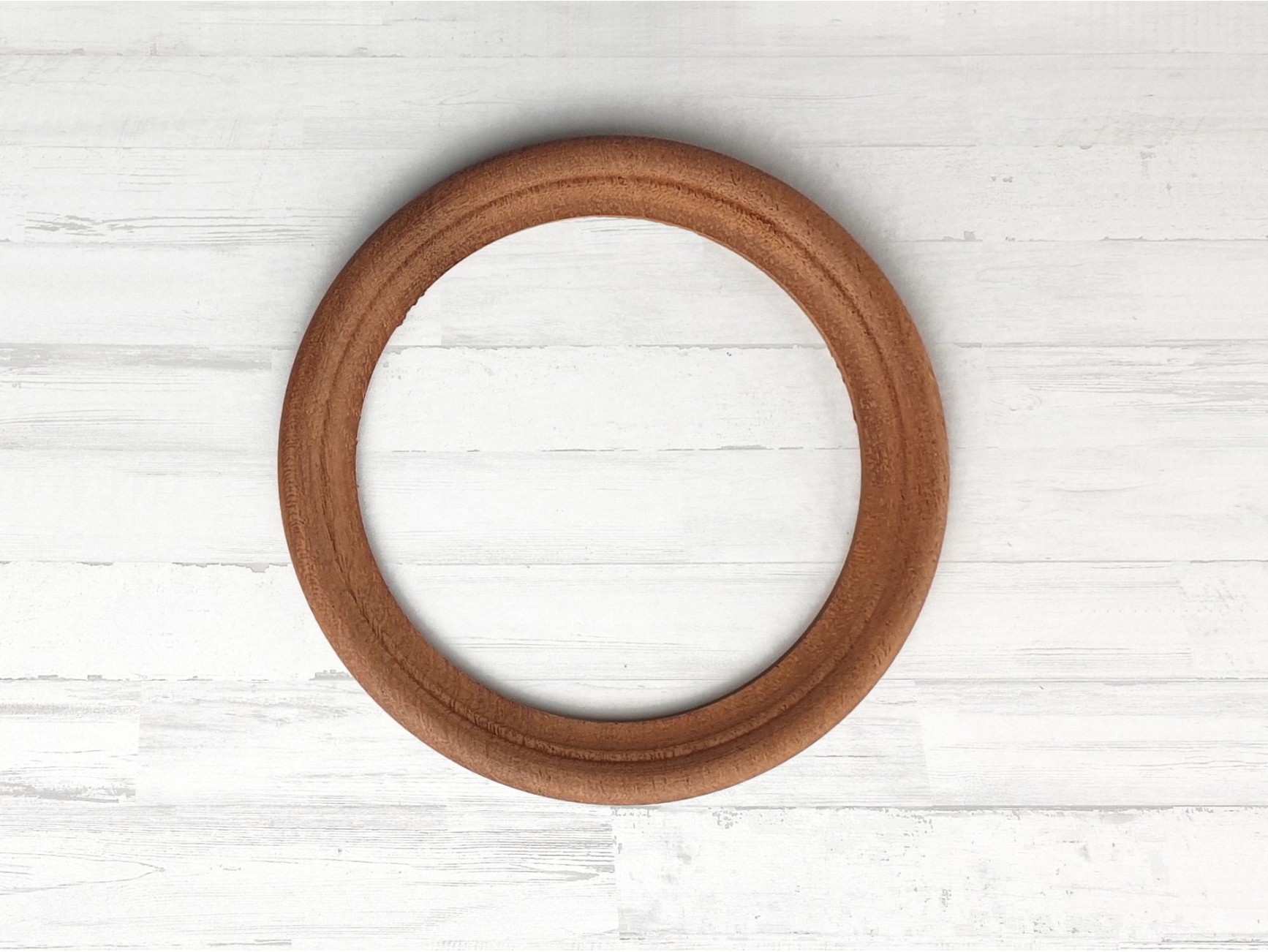 Wooden hoops with interior profile, available in beech and sapelly wood.