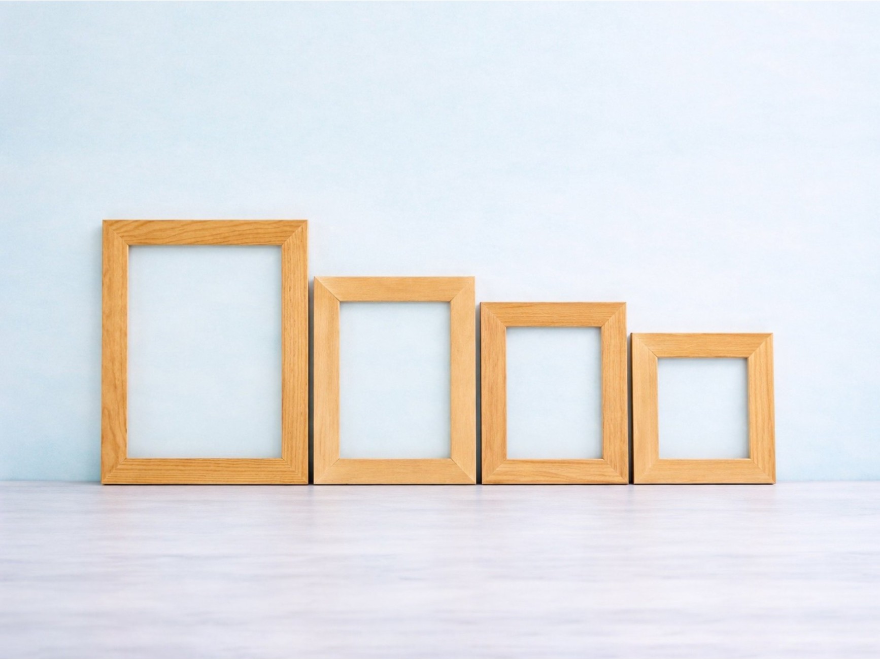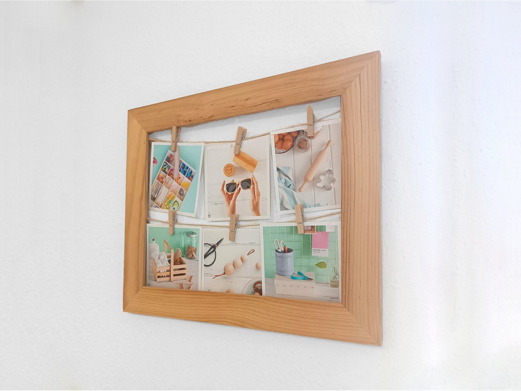 Molduras de madera maciza de 4 cm de ancho, con elegante rebaje interior que aporta profundidad y un acabado cuidado. Se suministran sin cristal ni trasera, perfectas para proyectos decorativos, composiciones murales o decoración de paredes en hogares, oficinas, tiendas, restaurantes o espacios educativos.