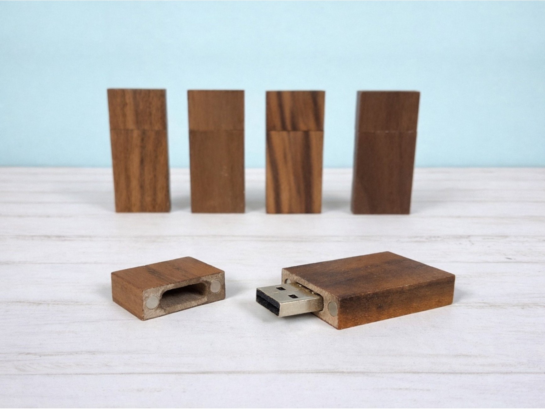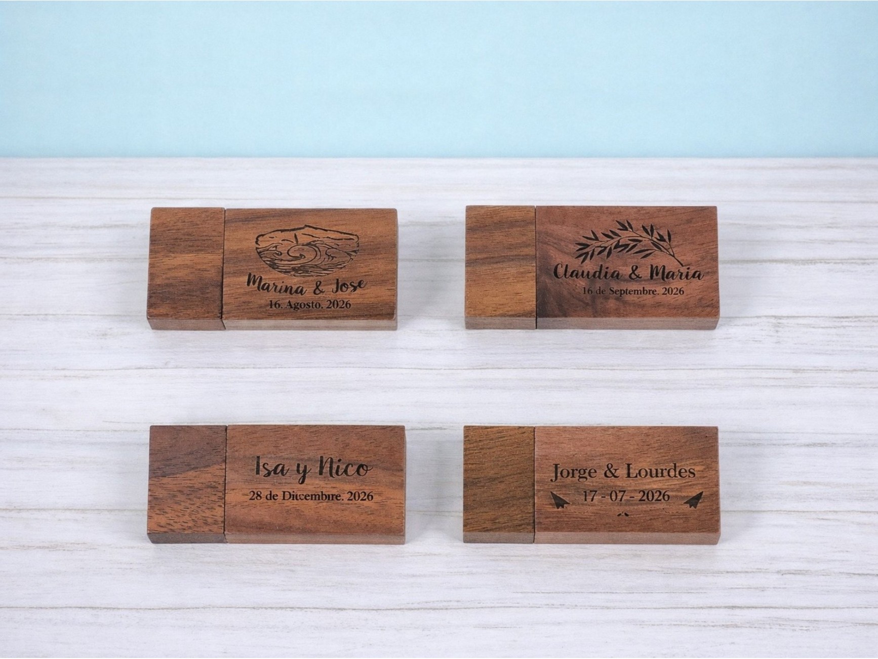 PenDrive de madera con imán con forma de corazón para ocasiones especiales.