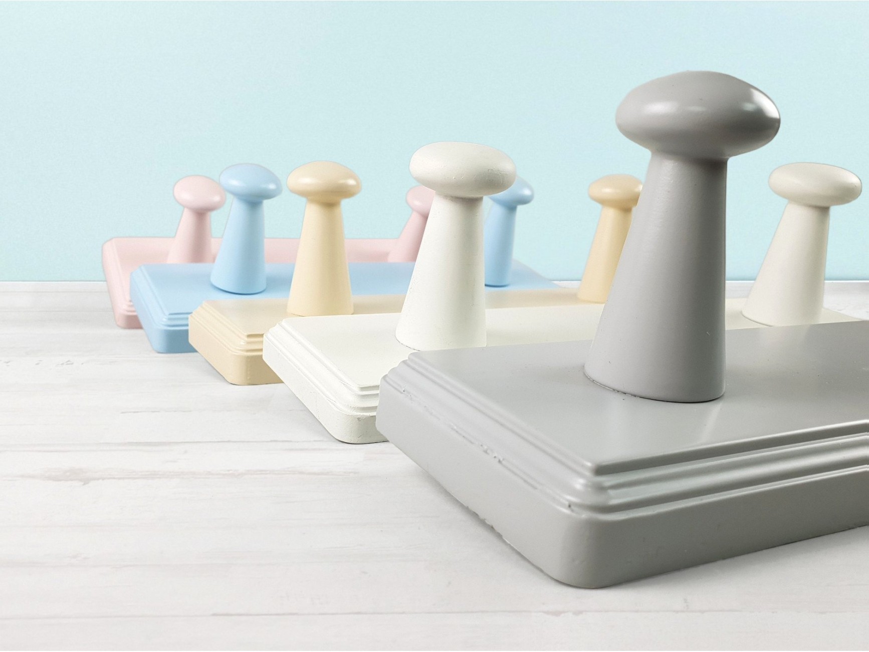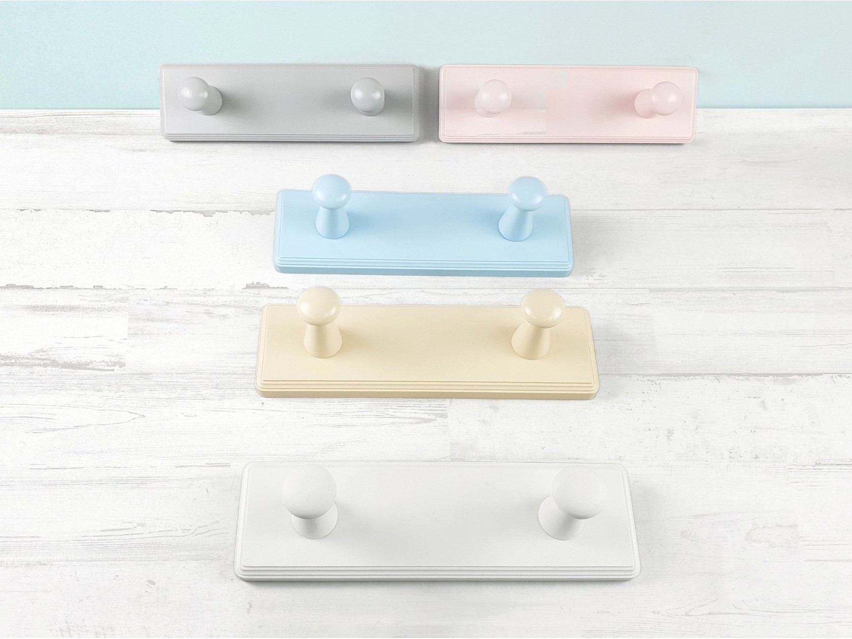 Perchero de pared 2 colgadores lacados en 5 colores a elegir blanco, azul, rosa, beige o gris.