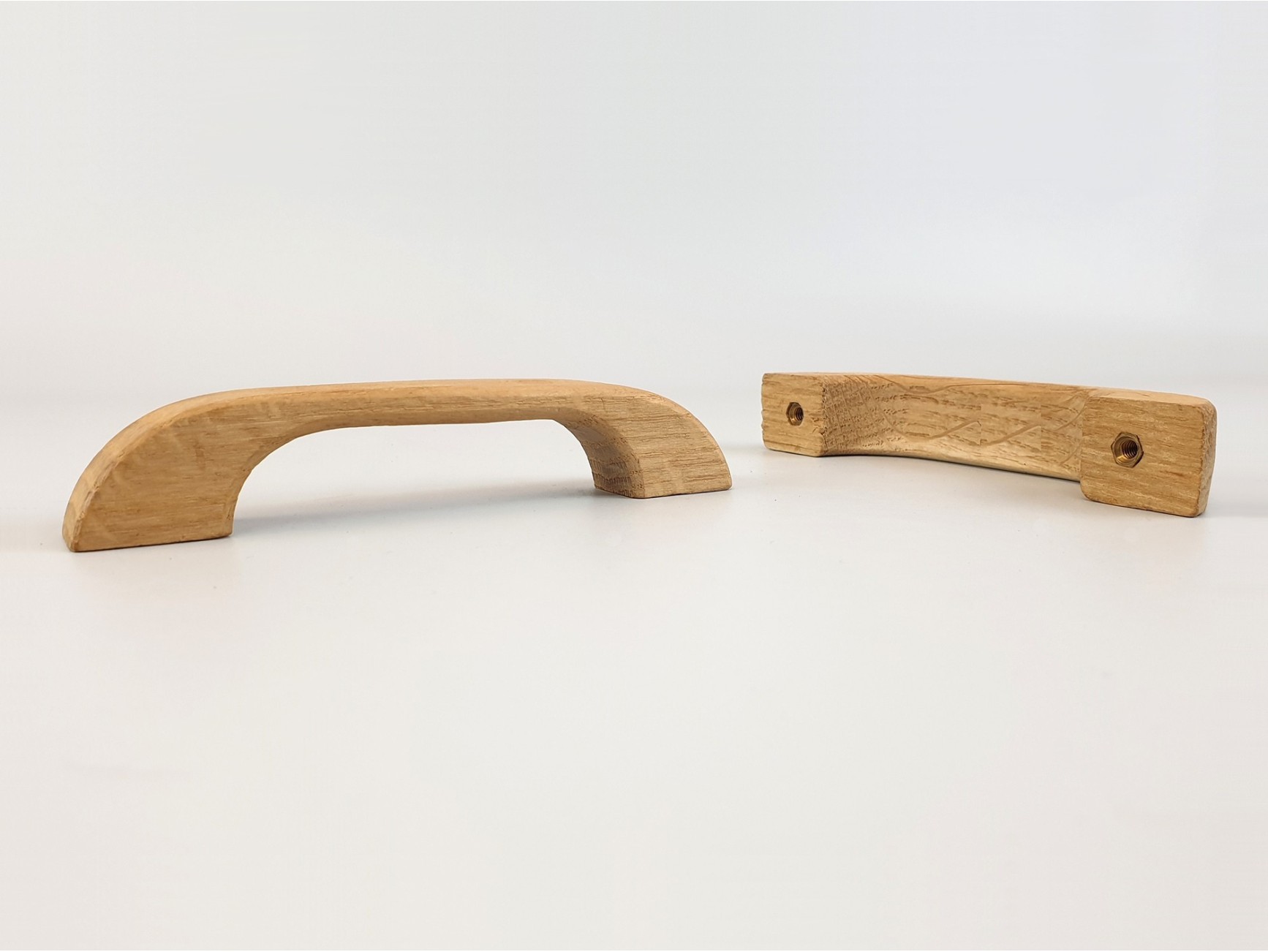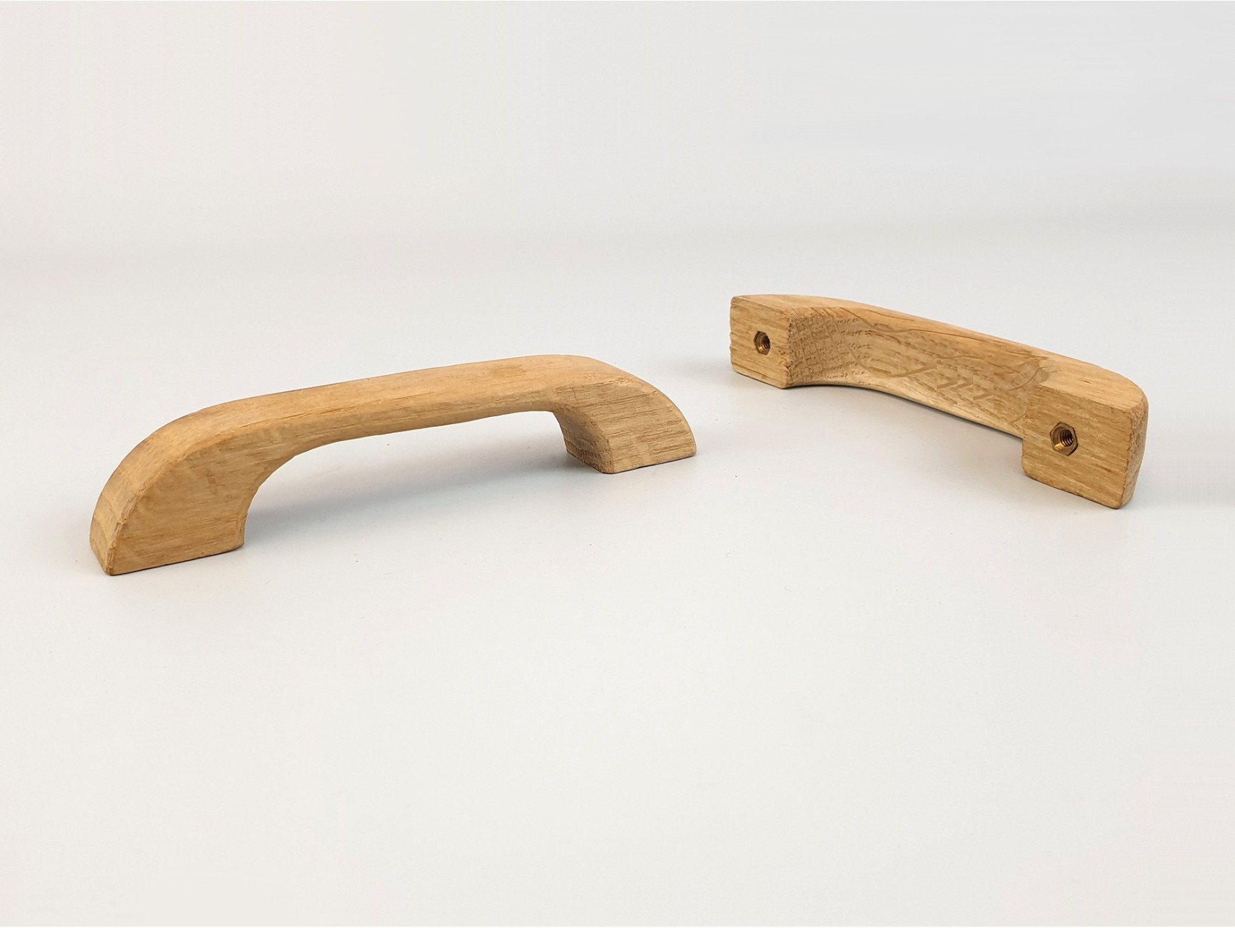 Tirador asa en madera de roble natural con 2 tuercas para tornillo M4.
