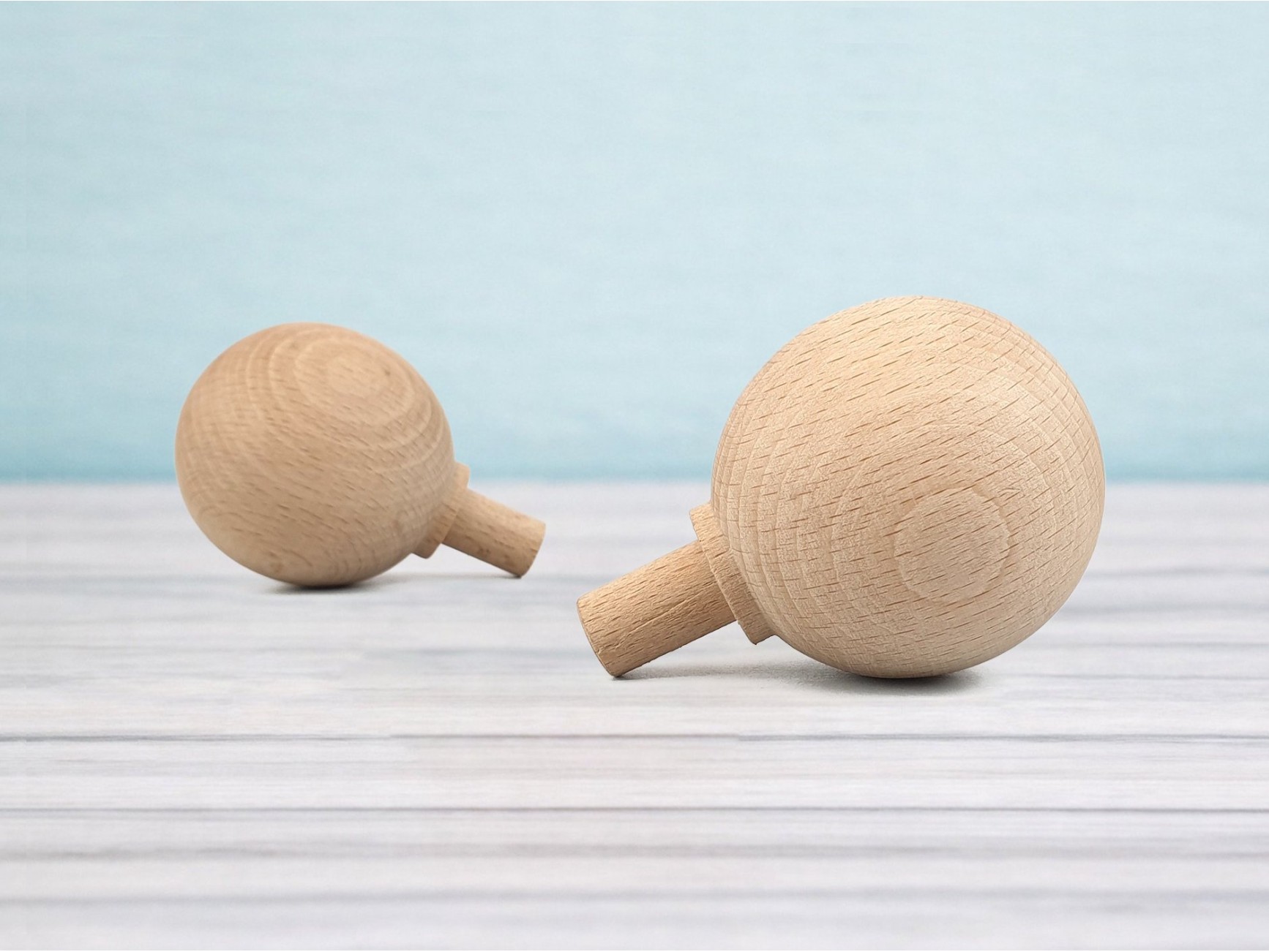 Tirador en madera de haya natural con forma de seta y espiga..Medida - Tirador sin espiga: Ø4,5x4 cm. - Espiga: Ø1x1 cm. - Total con espiga: Ø4,5x5 cm.