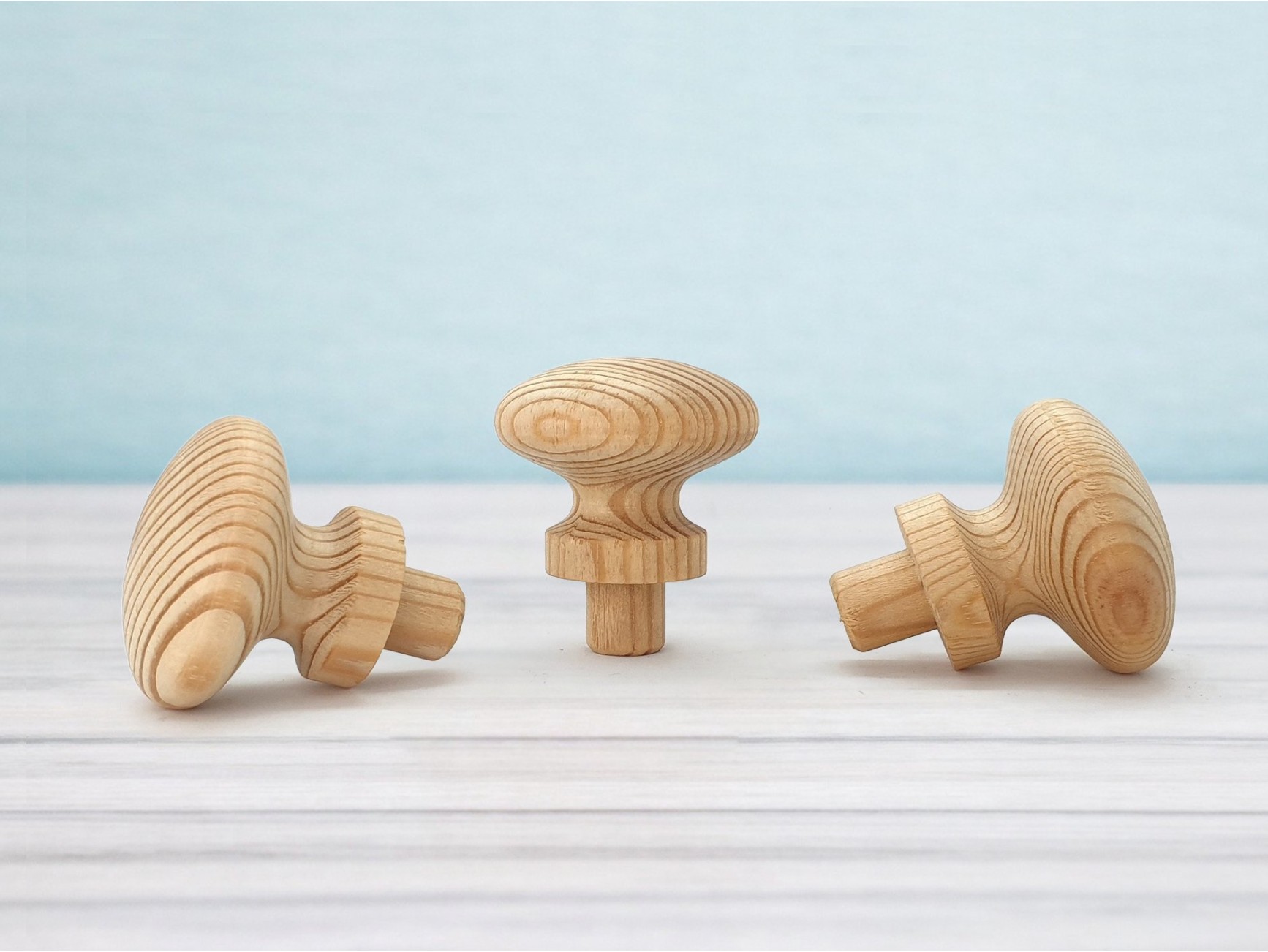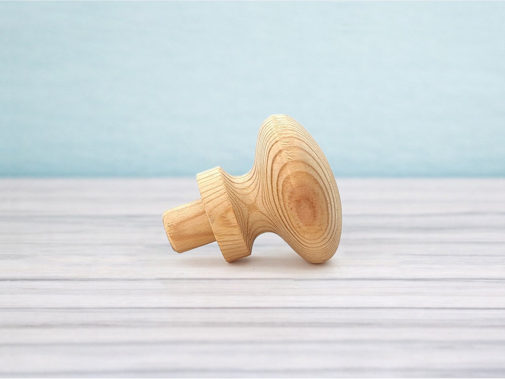 Tirador forma bola fabricado en madera natural de pino, haya o lacado en blanco con tuerca embutida para tornillo M4..Medida - Ø3x3 cm.